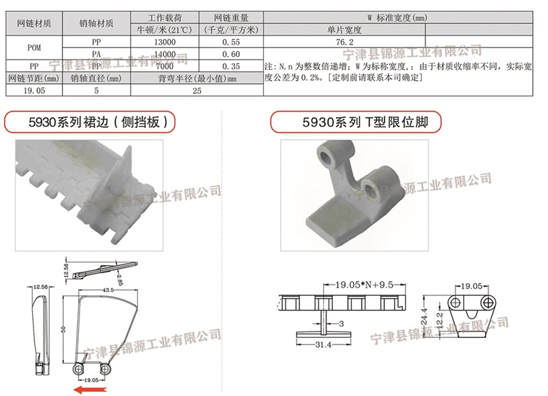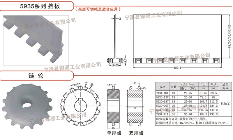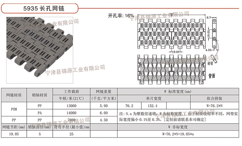 PP、POM材質  5935型廣泛應用在食品加工、烘干、冷卻、包裝、蓄電池、物流、水產類等自動化生產線